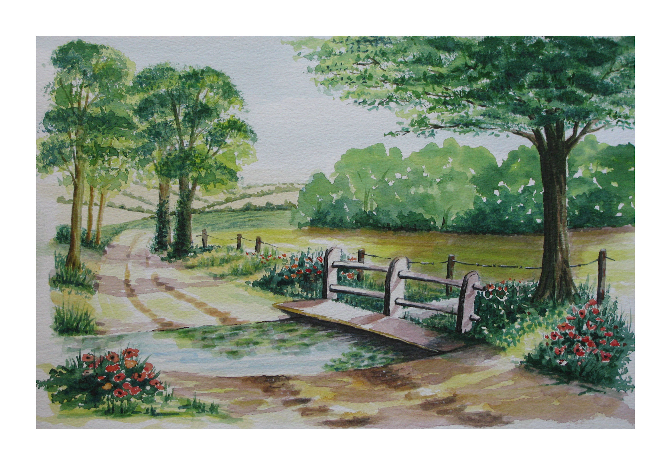 Description: Landscape -Quiet country lane(pic 15x10ins) An exercise in painting in various shades of greens