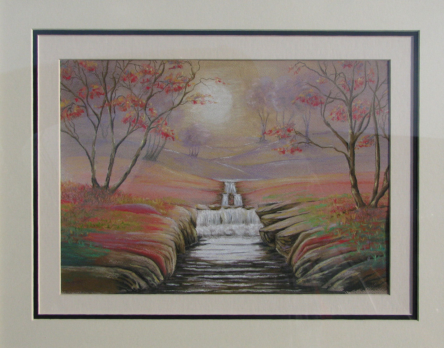 Description: I love the colours; the dusky lilac in the distance, the red and greens in the foreground and the dark water. Very evocative.